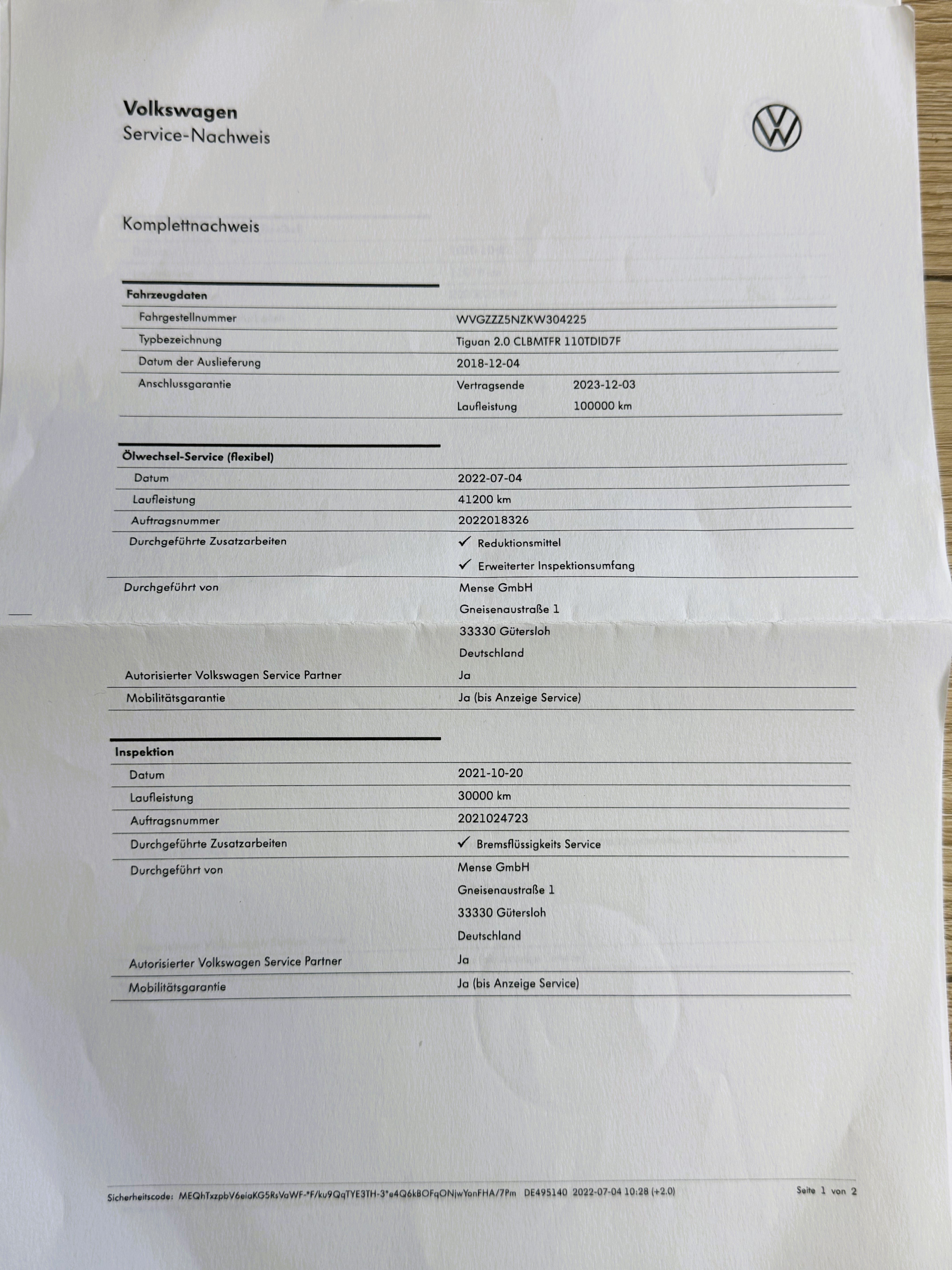 Svi servisi su rađeni u ovlaštenom VW servisu u njemačkoj.